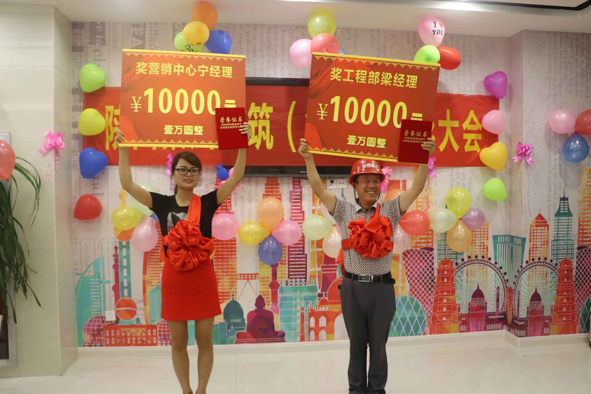 為了激發(fā)公司全體員工的工作熱情,全面完成2017年的工作任務,按照公司的制度,2017年8月23日在營銷中心召開了表彰大會。表彰工程部梁紅經理帶領部門人員在2016年秦川·華府5#、6#樓施工建設中,在項目管理、質量安全、工程進度上做出了突出成績;表彰營銷中心寧蘊怡經理帶領部門人員在零廣告投入的情況下,提前并超額完成公司下達的銷售任務。